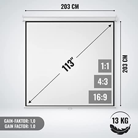 Obrazovka má koeficient zosilnenie 1,0, ktorý je optimalizovaný pre projekcie s LCD a DLP lúče. Tu ste vždy flexibilný, rovnako ako pri montáži na stenu alebo na strop. Projekčné plátno je vyrobené z trojvrstvové tkaniny, ktorá sa vďaka vinylovému poťahu ľahko čistí vlhkou handričkou. Po použití možno obrazovku opäť zrolovať a vďaka technológii rolovanie zostáva bez záhybov.