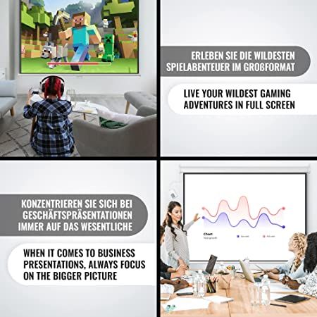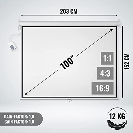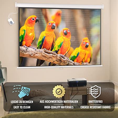 Pohodlné projekčné plátno s diaľkovým ovládaním na premietanie ostrého obrazu s vysokou kvalitou a rozlíšením. Toto plátno ponúka maximálne pohodlie, pretože je výškovo nastaviteľné. Môžete upraviť požadovaný formát. Plátno má čierne okraje pre lepší kontrast. Roletová zástena je vhodná na montáž na stenu aj na strop. Spodná napínacia tyč motorizovaného plátna napína vinylovú tkaninu, aby sa zabránilo akémukoľvek druhu záhybov. Pomocou dodaného diaľkového ovládača môžete projekčné plátno na diaľku zrolovať, upraviť a rozvinúť.