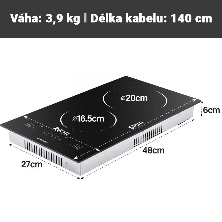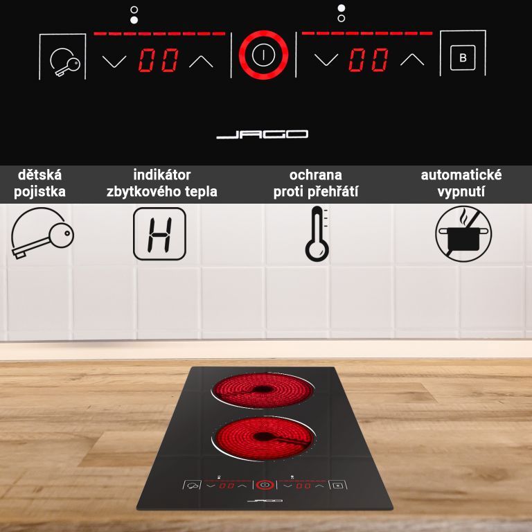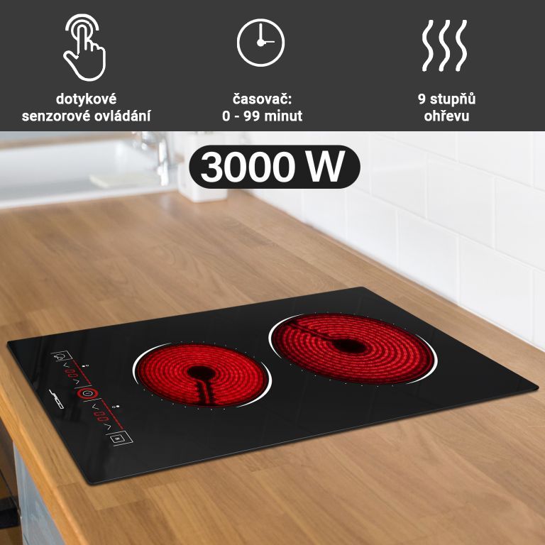 Vstavaná sklokeramická varná doska so štyrmi varnými zónami. Je vhodná pre všetky typy riadu (keramika, nerezová oceľ, železo, hliník, meď, žiaruvzdorné sklo atď.). Má technológiu dotykového ovládania a deväťstupňovú reguláciu teploty. S káblom (5-žilovým) bez zástrčky VDE.