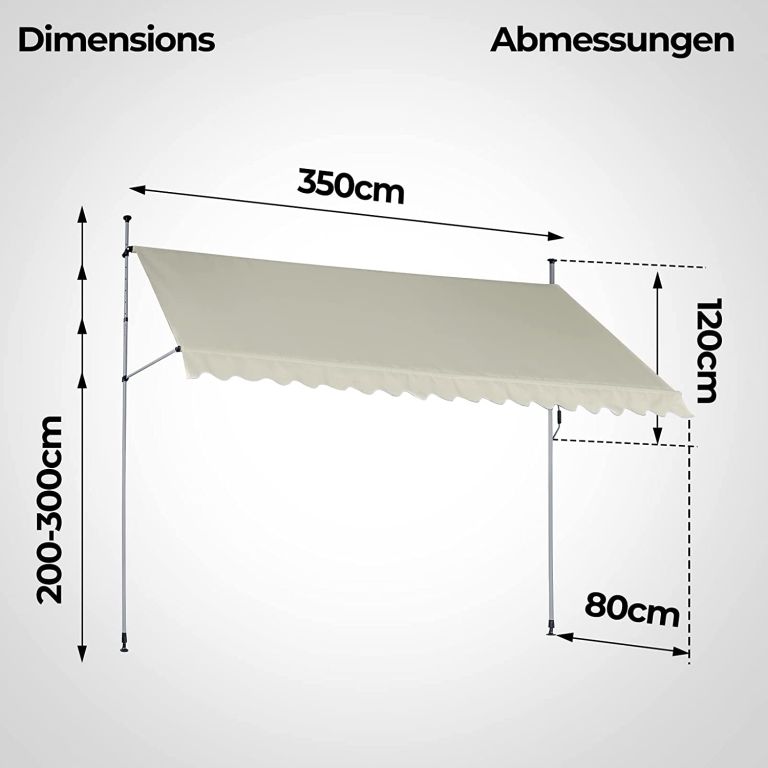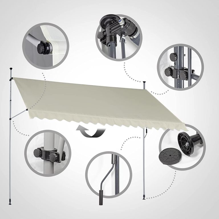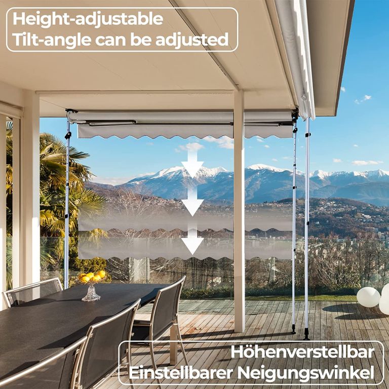 Balkónová markíza je kompletne vyrobená z vodotesného polyesteru s polyuretánovou vrstvou s integrovanou UV ochranou. Výšku slnečnej markízy je možné nastaviť medzi 2 a 3 m, takže markízu môžete prispôsobiť potrebám Vašej miestnosti. Ručne ovládanú terasovú markízu je možné individuálne nastaviť vďaka ručnej kľučke teleskopickej tyče, ktorá reguluje uhol sklonu. Vďaka praktickému upevneniu je upínacia markíza obratom ruky pripravená na použitie bez toho, aby boli nutné zbytočné zásahy do Vašej miestnosti.