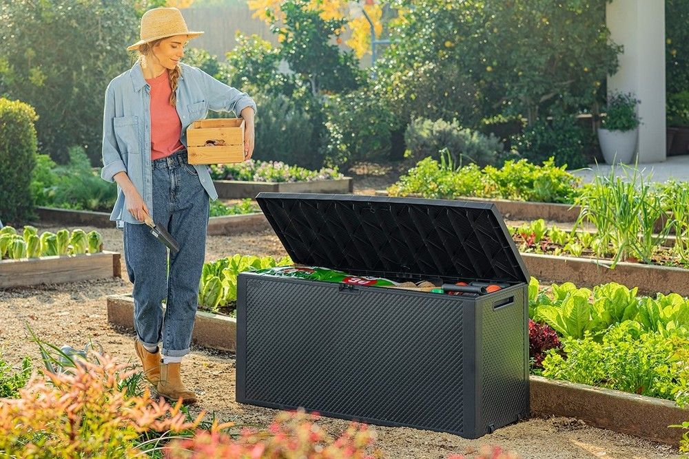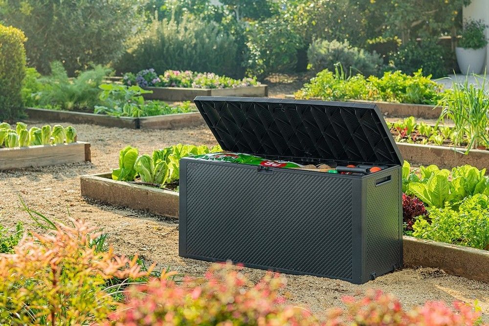 Odkladací box umožňuje pohodlne uložiť všetko, čo chcete mať po ruke na záhrade.