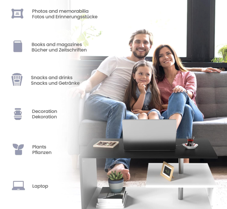 Konferenčný stolík patrí jednoducho do každého obytného prostredia. Dôležité pri hľadaní ideálneho doplnku pre Váš domov je, že sa nepozeráte len na design. Náš asymetrický konferenčný stolík prináša svieži vietor do vašej obývačky a súčasne ponúka úložný priestor a moderný nádych. Môže byť dekorovaný úplne podľa vášho vkusu, hodí sa ale perfektne aj ako odkladacia plocha na nápoje a občerstvenie, keď sa niekedy stretnete s rodinou na hráčskom večeri. Uchovávajte všetko, čo denne používate, vždy v dosahu – tento štýlový a funkčný stôl tak správne oživí vašu obývačku. K dostaniu vo viacerých farbách. Vrátane podrobného návodu na montáž.