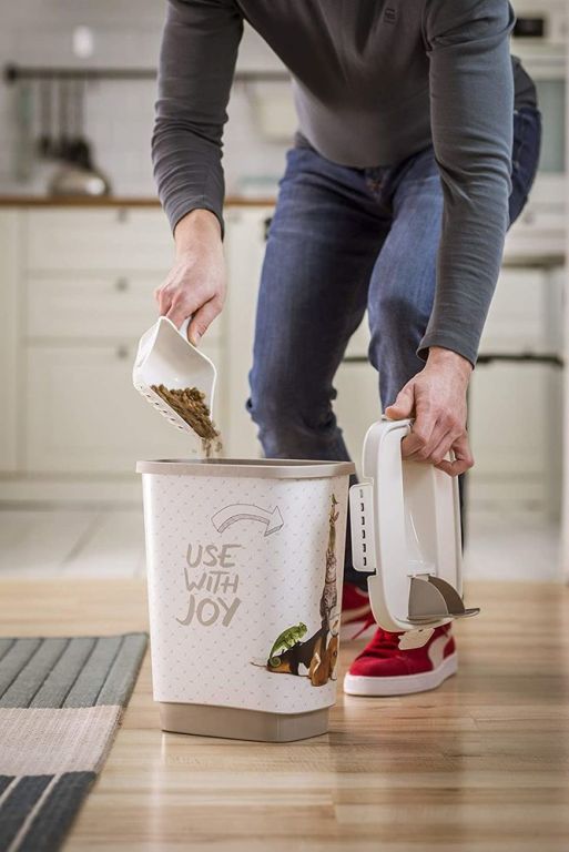 Vyklápací dávkovač vo veku, pre jednoduché dávkovanie a odsypávanie krmiva. Spoľahlivé vzduchotesné uzavretie veka vďaka bočným klipsám. Ergonomický tvar umožňuje pohodlné uchopenie. Vyrobené z plastu vhodného pre potraviny (PP).