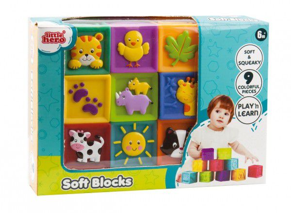 Kostky 9ks měkké gumové 5x5x5cm v krabici 6m+