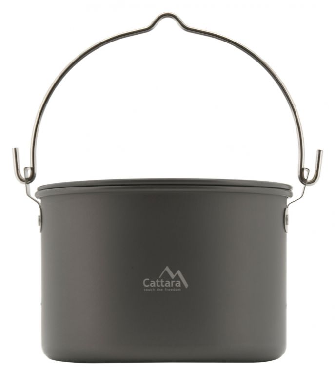 Kotlík je zhotovený z eloxovaného hliníka tmavosivej farby. Veko je vybavené madlom pre pohodlnú manipuláciu a samotný kotlík je vybavený tvarovaným uchom pre možnosť zavesenia za hák nad oheň.