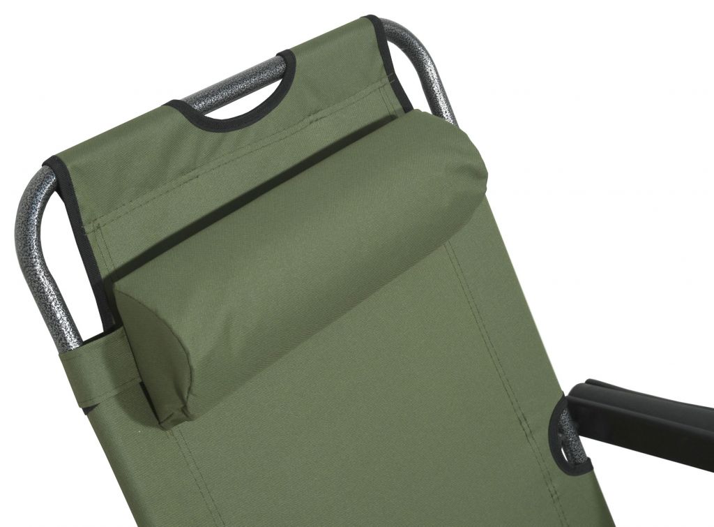 Lehátko je možné používať konvenčným spôsobom alebo ho môžete zložiť do podoby rybárskeho kresla, ktoré ocení každý outdoorový nadšenec. Ležadlo je vybavené výškovo nastaviteľným vankúšom a opierkami rúk pre maximálne pohodlie.
