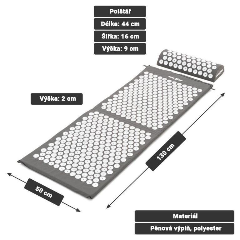 MAXXIVA Akupresúrna podložka s vankúšom, 130 x 50 cm, sivá