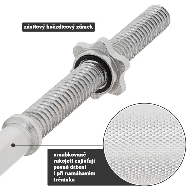 S touto praktickou sadou si ľahko zariadite domácu posilňovňu. Zakrivená tyč je ale ideálna aj pre každodenný tréning v štúdiu alebo pri rehabilitácii. Súprava je vhodná pre náročný tréning s menším zaťažením zápästia ako s jednoručnou činkou. Hviezdicové zámky spoľahlivo fixujú závažia.