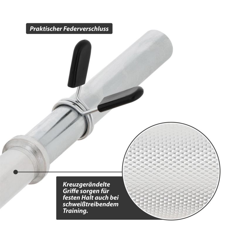 MAXXIVA olympijská tyč s pružinovými zámkami 140 cm, striebo