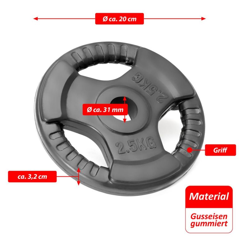 S týmto závažím môžete postupne zvyšovať intenzitu tréningu. Či už sa jedná o drepy, benchpress, mŕtvy ťah alebo zhyby, závažia sú ideálne pre domáci tréning a vďaka tvaru úchytu ich možno používať aj bez tyče. Odlievané záťažové dosky sú mimoriadne odolné a zostávajú rozmerovo stabilné aj pri náročnom používaní. Vďaka pogumovaniu sa materiál nepoškriabe tak ľahko ako napríklad závažia potiahnuté plastom. Tieto závažia sa používajú v kulturistike, silovom tréningu, crossovom tréningu a v oblasti rehabilitácie a fitness. Činky sú v súkromnej posilňovni nepostrádateľné.