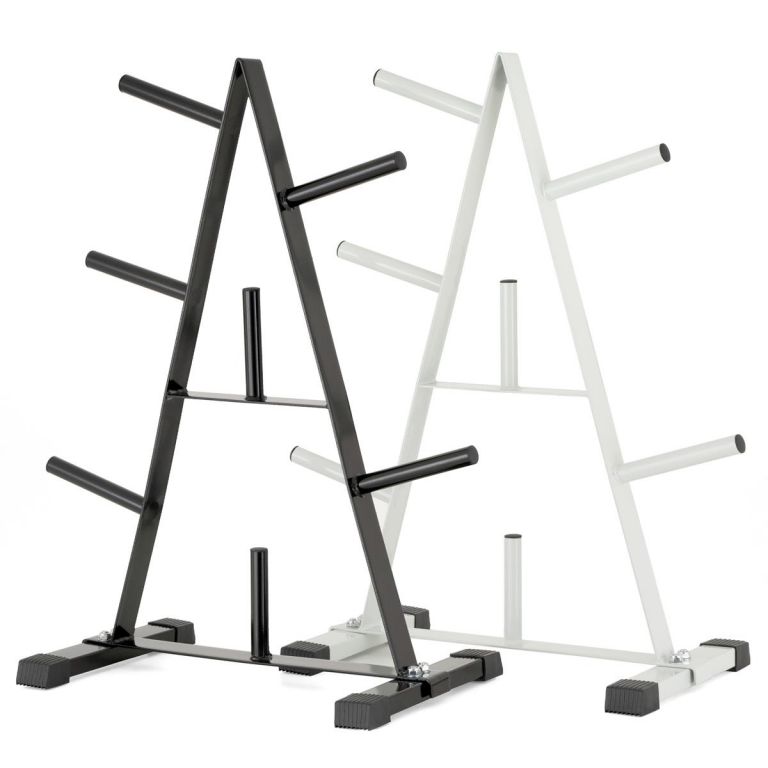Praktický stojan na činky v atraktívnom dizajne je vhodný na uloženie činkových tyčí, príslušenstva a záťažových dosiek . 7 držiakov pre závažie s priemerom otvoru 30/31 mm ponúka dostatok miesta pre Vaše vybavenie. Stojan má kvalitnú oceľ - je vyrobený z vysoko kvalitnej rúrkovej ocele v neutrálnej bielej farbe. Pogumované nožičky zaisťujú dobré odpruženie a stabilizáciu.