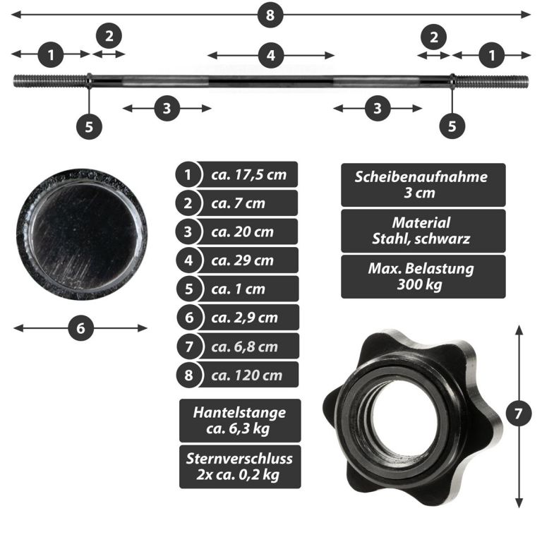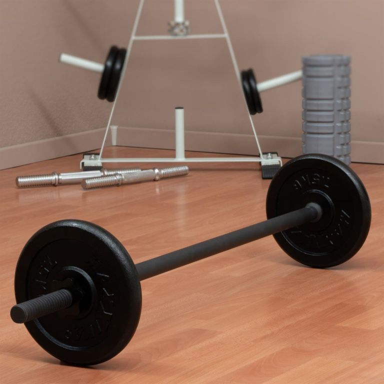 Optimálna činka na použitie v posilňovni aj doma, vhodná pre tréning hrudníka, paží, ramien, krku, posilňovania, rehabilitačné športy, kulturistiku, bench press, mŕtve ťahy, drepy, výpady, kľučky a ďalšie. Je vhodná pre dostupné záťažové dosky s 3 cm držiakom kotúča a priemerom otvoru 30 / 31 mm. Protišmyková doska je upevnená poistným krúžkom, aby sa zabránilo skĺznutiu závažia pri pohybe. Hviezdicové zámky, ktoré je možné rýchlo vymeniť, bezpečne fixujú závažia na tyči činky a zaručujú jednoduchú výmenu závaží. Rukoväte sú krížovo vrúbkované na bezpečné uchopenie.