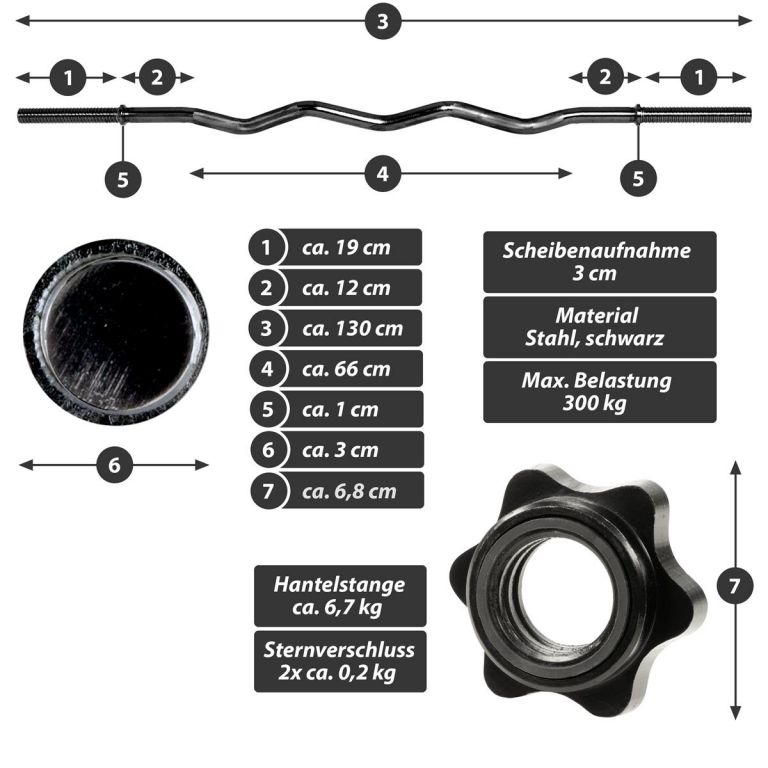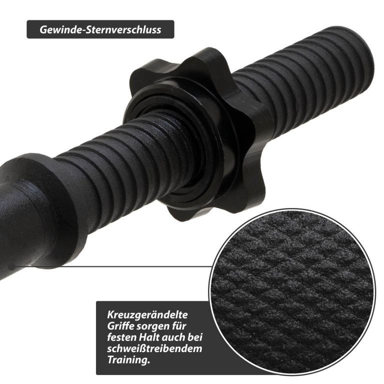 Zakrivený tvar tyče umožňuje rôzne možnosti úchopu na precvičenie rôznych častí svalov a umožňuje precvičiť konkrétne svalové skupiny i komplexné precvičenie celého tela. Ideálne pre náročný tréning s menším zaťažením zápästia ako s jednoručnou činkou. Vďaka zakrivenému tvaru je činka vhodná najmä na efektívny a účinný tréning paží. Hviezdicové upevňovacie prvky je možné pomerne rýchlo povoliť a opäť bezpečne upevniť, takže je zaručená pevná fixácia závaží.