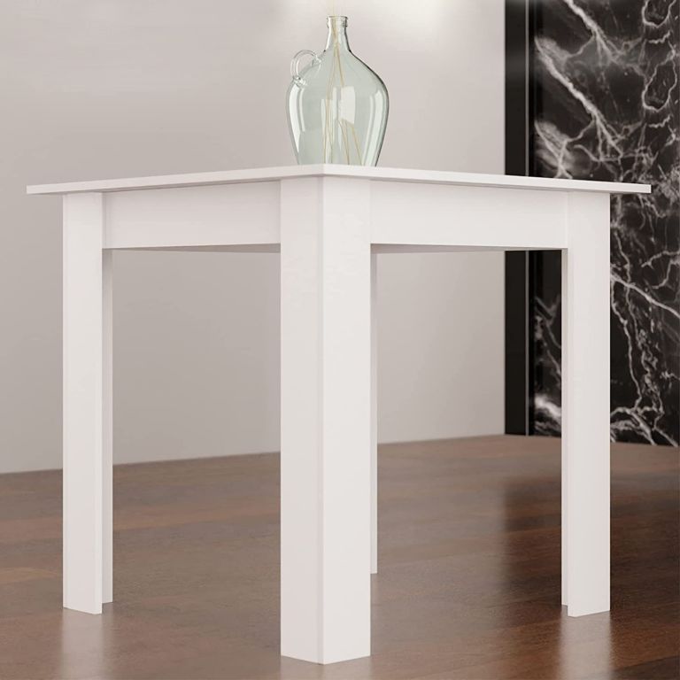 Tento elegantný jedálenský stôl sa hodí do každého bytu a domu. Kompaktná veľkosť tohto jedálenského stola je ideálna do malej kuchyne aj obývačky. Kuchynský stôl je vyrobený z ľahko udržiavateľnej MDF konštrukcie s bielymi nohami a stolnou doskou v bielej farbe, povlak z melamínovej živice sľubuje dlhú životnosť. Tento tradičný stôl je tou správnou voľbou na spojenie rôznych štýlov. Nadčasový dizajn tohto jedálenského stola doplní každú miestnosť.