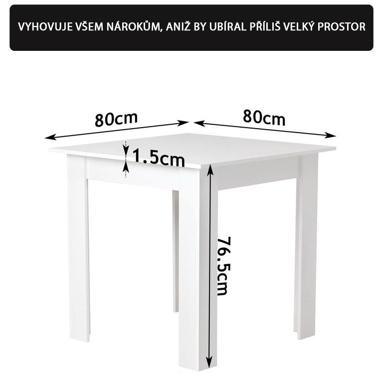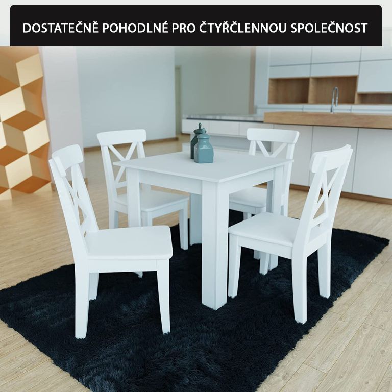 MIADOMODO jedálenský stôl pre 4 osoby, biely, 80x80x76,5 cm
