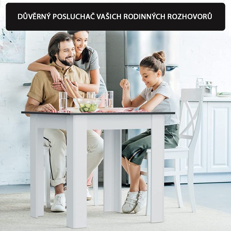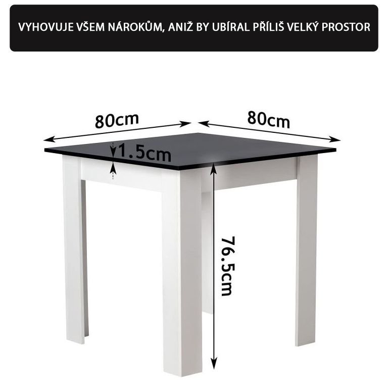 Tento elegantný jedálenský stôl sa hodí do každého bytu a domu. Kompaktná veľkosť tohto jedálenského stola je ideálna do malej kuchyne aj obývačky. Kuchynský stôl je vyrobený z ľahko udržiavateľnej MDF konštrukcie s bielymi nohami a stolnou doskou v čiernej farbe, povlak z melamínovej živice sľubuje dlhú životnosť. Tento tradičný stôl je tou správnou voľbou na spojenie rôznych štýlov. Nadčasový dizajn tohto jedálenského stola doplní každú miestnosť.