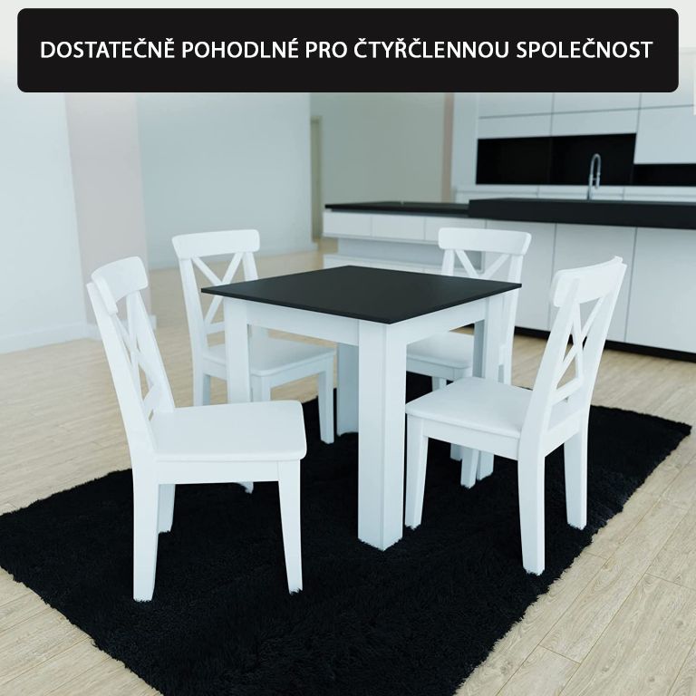 MIADOMODO jedálenský stôl pre 4 osoby, čierny, 80x80x76,5 cm