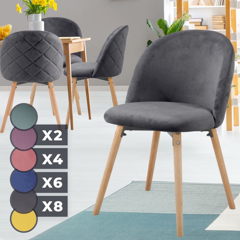 Nábytok v škandinávskom štýle je už nejakú dobu trendom ako v domácnostiach, tak aj v komerčných zariadeniach. Tieto stoličky v modernom dizajne majú nohy z bukového dreva, ktoré zaistia skvelú stabilitu a príjemný zamatový poťah pre to správne posedenie.