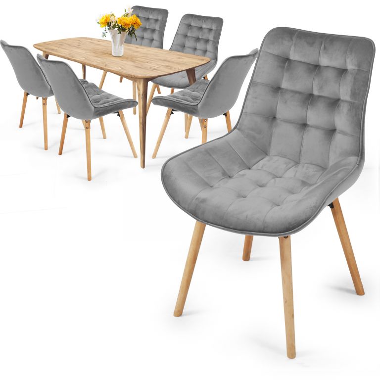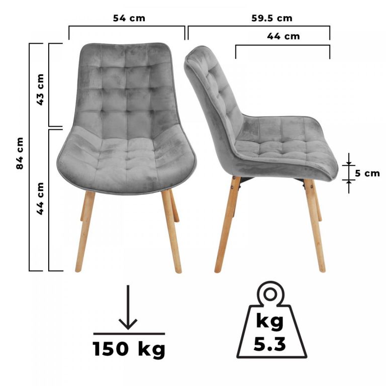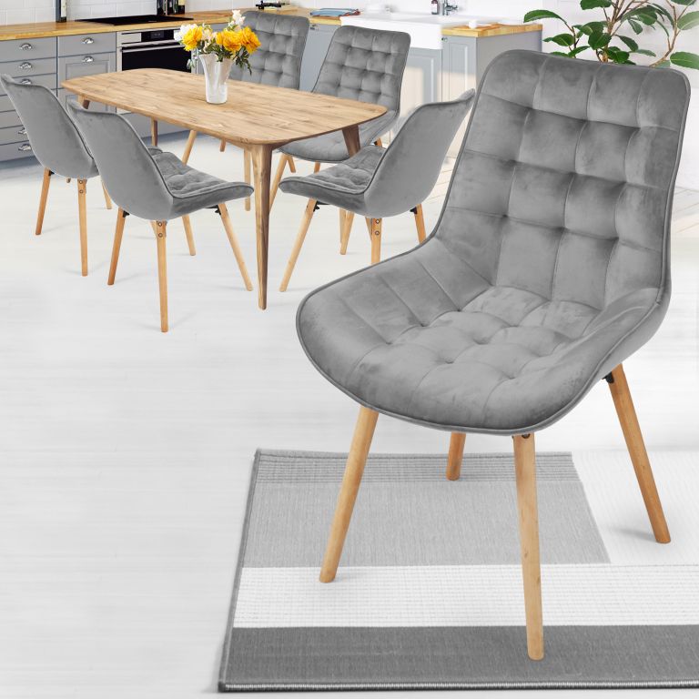 Tieto zamatové stoličky do jedálne premenia každé stolovanie na nezabudnuteľný zážitok. Protišmykové nohy sú vyrobené z bukového dreva.