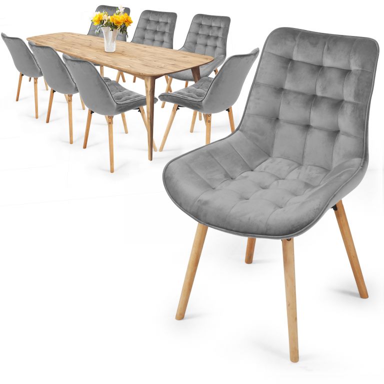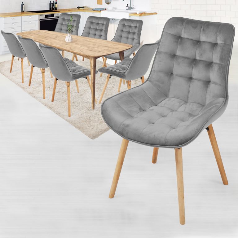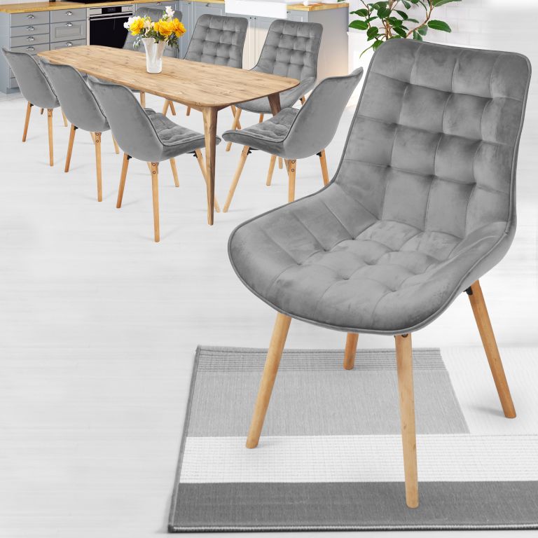 Tieto zamatové stoličky do jedálne premenia každé stolovanie na nezabudnuteľný zážitok. Protišmykové nohy sú vyrobené z bukového dreva.