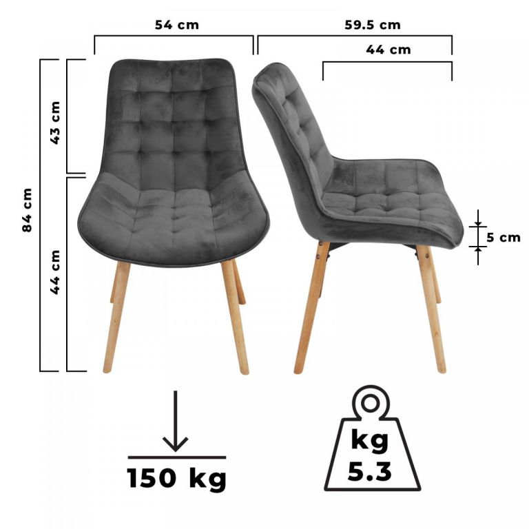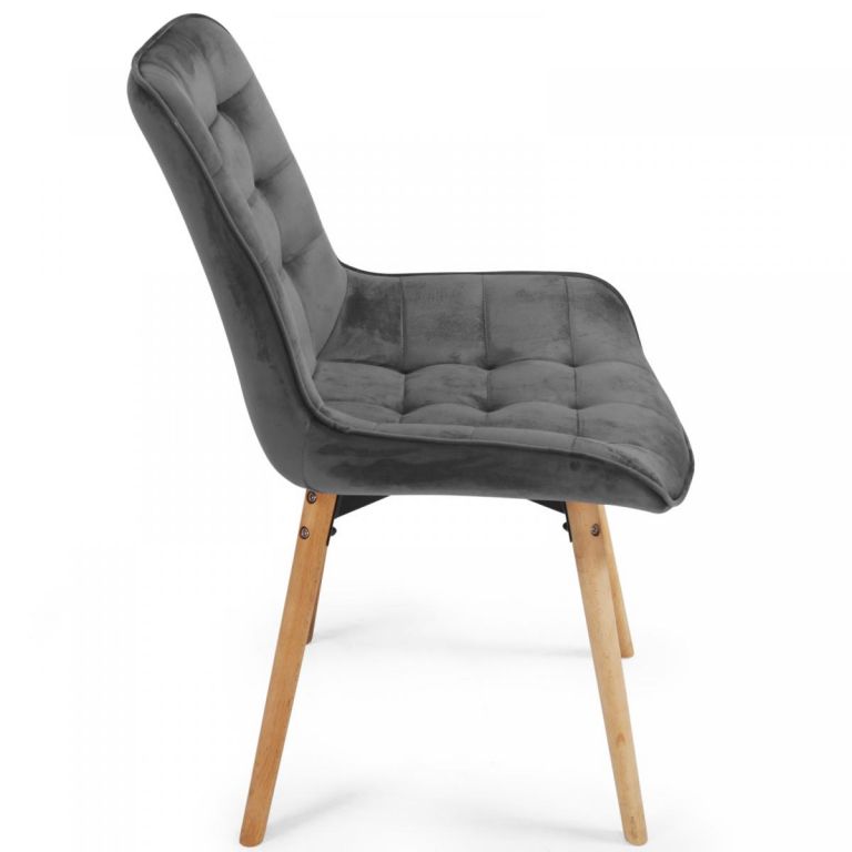 Tieto moderné, a napriek tomu vintage jedálenské stoličky majú sedák vyrobený zo zamatu a nohy z bukového dreva a sú dokonalým prvkom pre akýkoľvek in