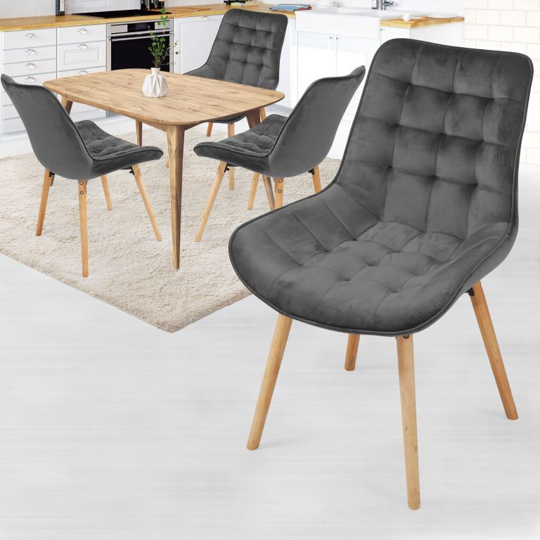 MIADOMODO sada prešívaných jedál. stoličiek, tm. šedá, 4 ks