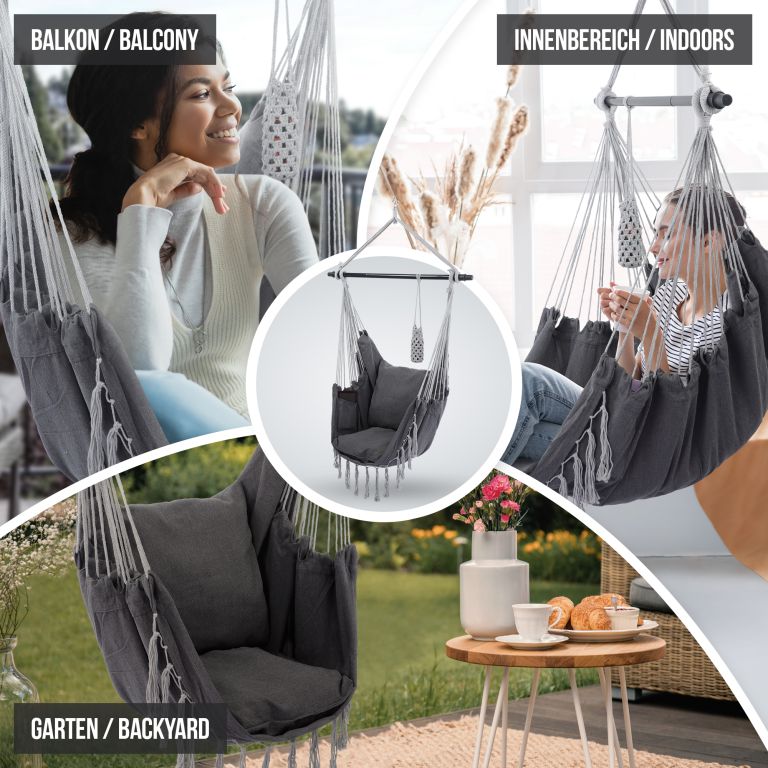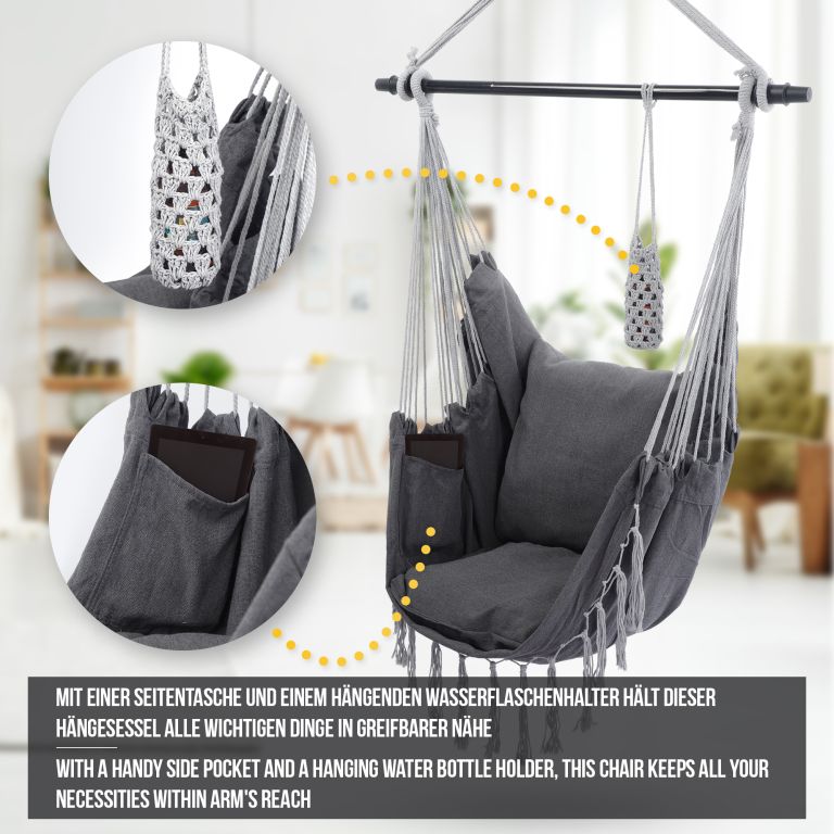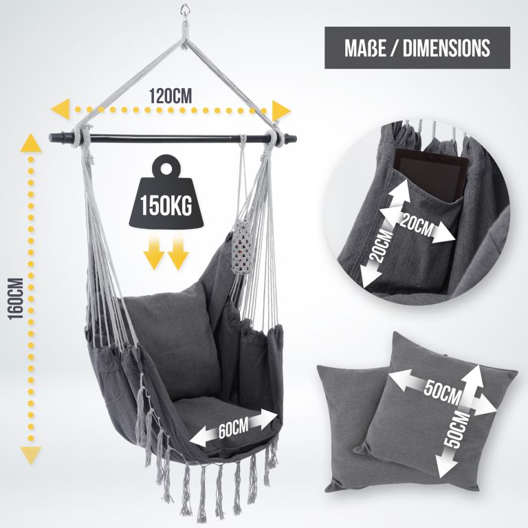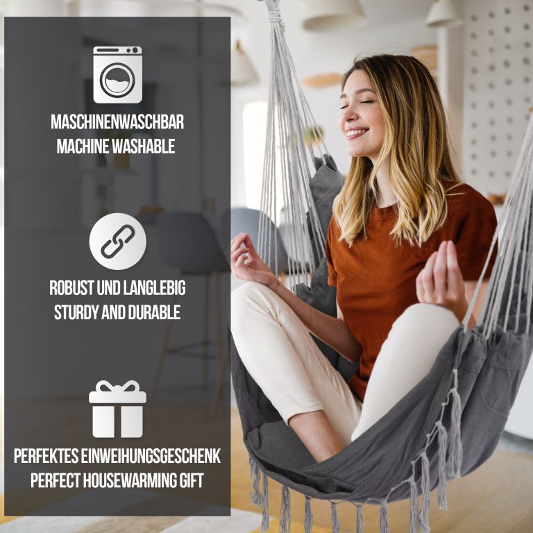 Po dlhom pracovnom dni si s knihou a šálkou kávy dokonale oddýchnete v tomto visiacom kresle, či už ste doma alebo vonku. Akonáhle si raz pohodlne sadnete do tohto visiaceho kresla, nebudete sa z neho chcieť vynoriť.