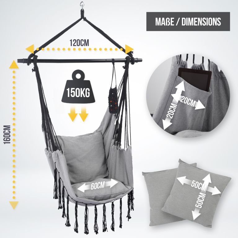 Po dlhom pracovnom dni si s knihou a šálkou kávy dokonale oddýchnete v tomto visiacom kresle, či už ste doma alebo vonku. Akonáhle si raz pohodlne sadnete do tohto visiaceho kresla, nebudete sa z neho chcieť vynoriť.