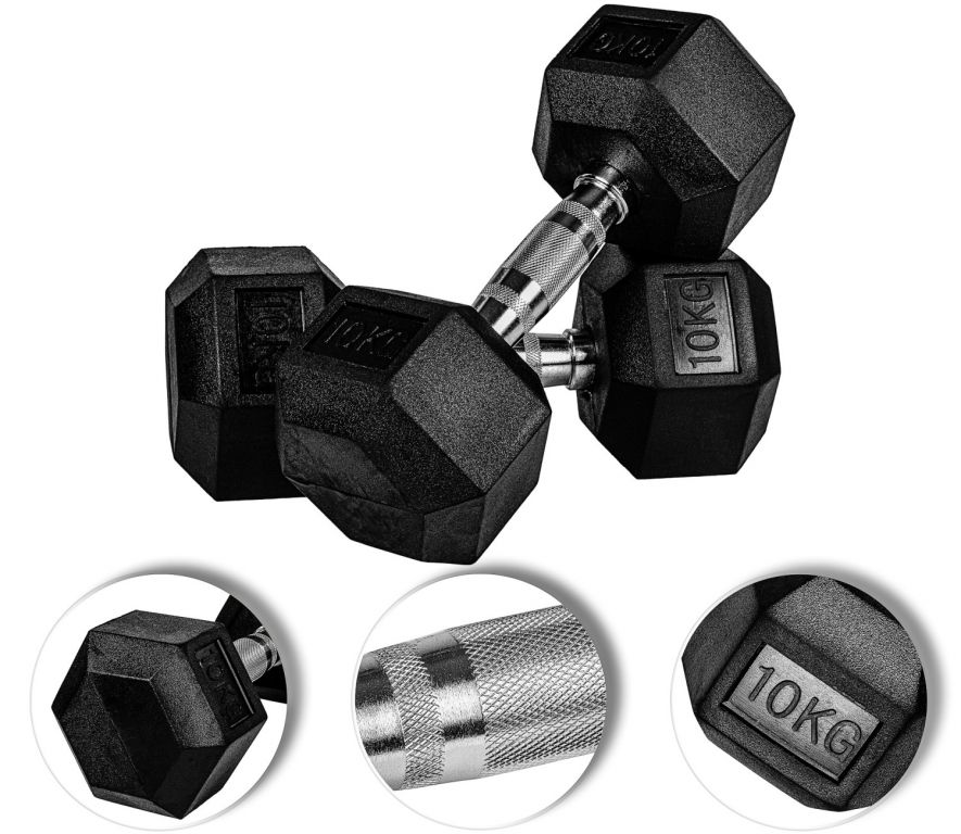 Rukoväť z chrómovanej ocele je priečne vrúbkovaná, čo zaisťuje bezpečné uchopenie. Liatinové jadro je potiahnuté špeciálnym gumovým povrchom, ktorý zabraňuje skĺzavaniu činiek. K dispozícii v 13 rôznych váhových veľkostiach - kompletne testované na škodlivé látky.