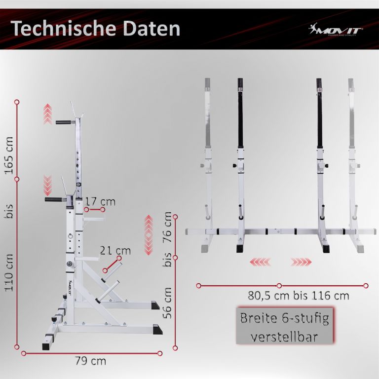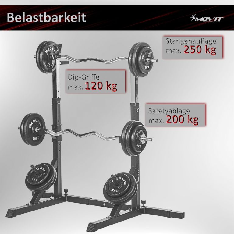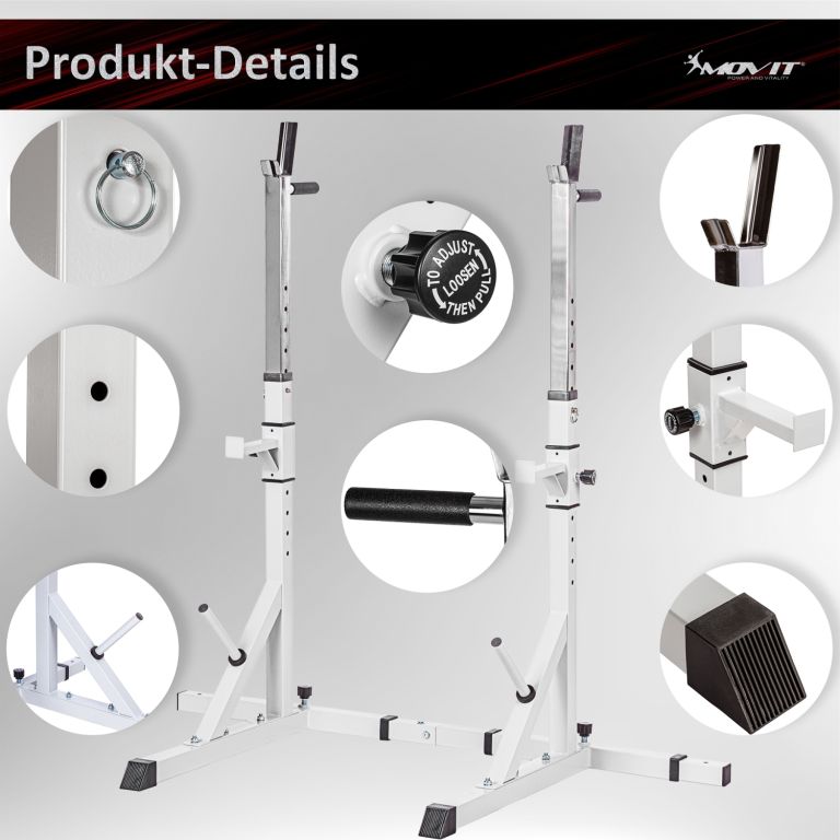 Robustný a stabilný stojan na činky sa skvele hodí do Vašej domácej posilňovne. Je ideálny pre každý tréning s činkou a drepy. Kompaktný a priestorovo úsporný. Tento stojan je vhodný pre začiatočníkov aj pokročilých užívateľov.