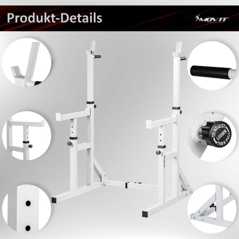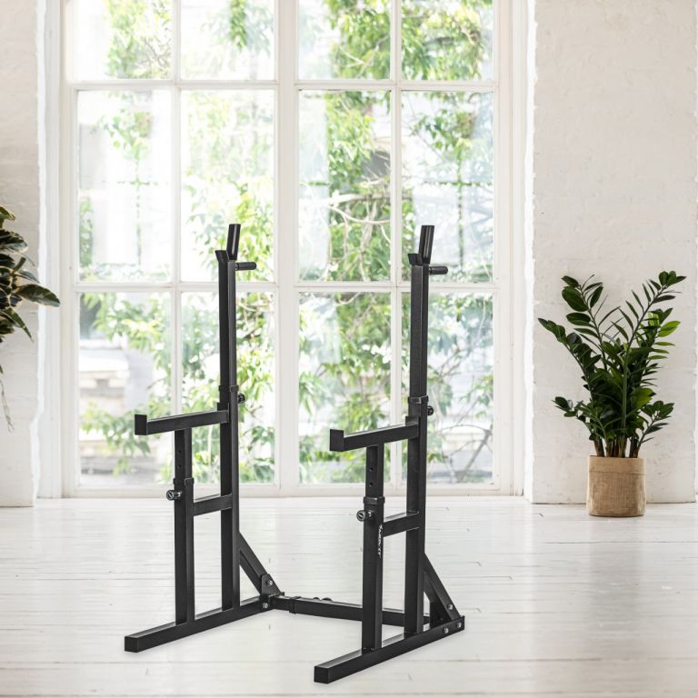 Robustný a stabilný stojan na činky sa skvele hodí do Vašej domácej posilňovne. Je ideálny pre každý tréning s činkou a drepy. Kompaktný a priestorovo úsporný. Tento stojan je vhodný pre začiatočníkov aj pokročilých užívateľov.