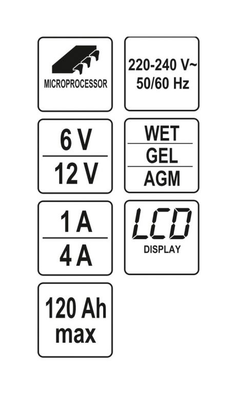 Nabíjačka je vybavená vstavanou mikroprocesorovou elektronikou, vďaka ktorej zaisťuje mikroprocesor cielené nabíjanie bez toho, aby došlo k prebitiu alebo poškodeniu akumulátora. Zaisťuje tým optimálne podmienky na ochranu a udržanie akumulátora v perfektnej kondícii. Medzi ďalšie užitočné funkcie patrí test batérie, alternátora a štartu.