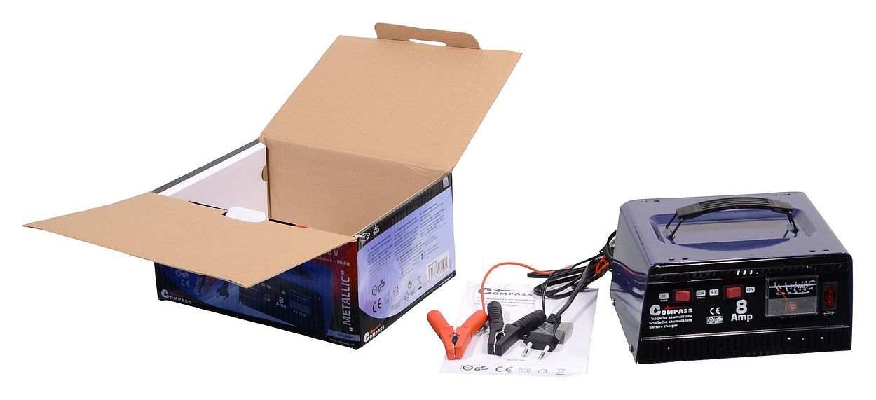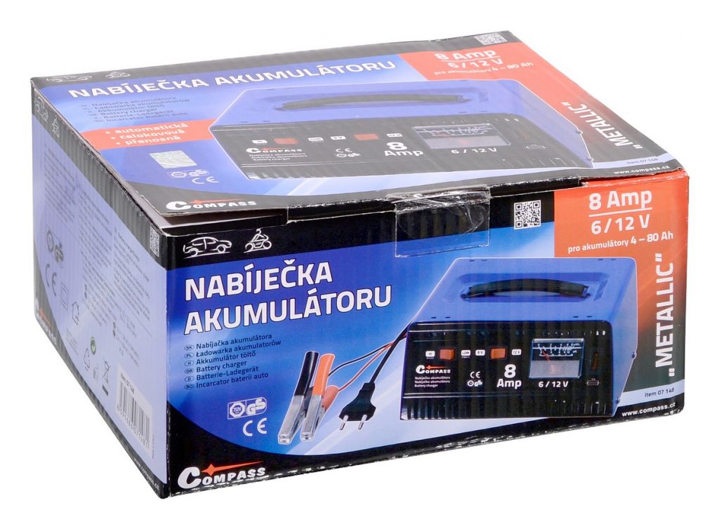 Celokovová automatická nabíjačka akumulátorov 6 V alebo 12 V 8 Amp. Napájanie 230 V, príkon 84 W. Umožňuje prepnutie nabíjania akumulátora 6 V, alebo 12 V a zároveň umožňuje zvoliť jednu z dvoch rýchlostí nabíjania (šetrné a rýchle). Nabíjačka je na čelnej strane osadená ampérmetrom ukazujúcim aktuálny nabíjací prúd a poistkou.