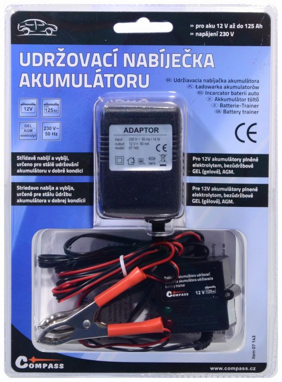 Udržiavacia nabíjačka autobatérií určená pre stále udržovanie akumulátora v dobrej kondícii. Striedavo nabíja a vybíja akumulátor, čím ho udržuje v optimálnej kondícii. Pripojenie k automobilovému akumulátoru 12 V pomocou klipsov priamo na akumulátor. Určené pre všetky 12 V akumulátory plnené elektrolytom, bezúdržbové GEL (gélové), bezúdržbové AGM.
