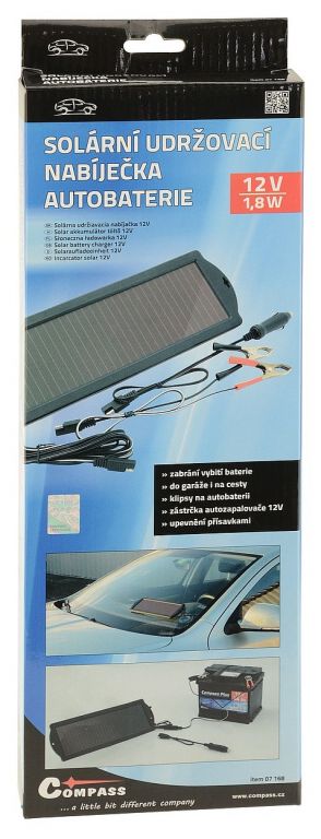 Solárna nabíjačka autobatérií určená na stále udržovanie akumulátora v dobrej kondícii. Ideálne na použitie pri dlhšom odstavení vozidla, napr. na dovolenke či v garáži. Vďaka príkonu 1,8 W bude Vaša autobatéria stále pripravená v dobrom technickom stave. Nebude strácať svoju kapacitu vplyvom samovybíjania ani stáleho zaťaženia bežnými systémami vozidla (alarm, autorádio atp.). Je vhodná pre všetky druhy olovených akumulátorov 12 V a funguje aj pri oblačnom počasí.