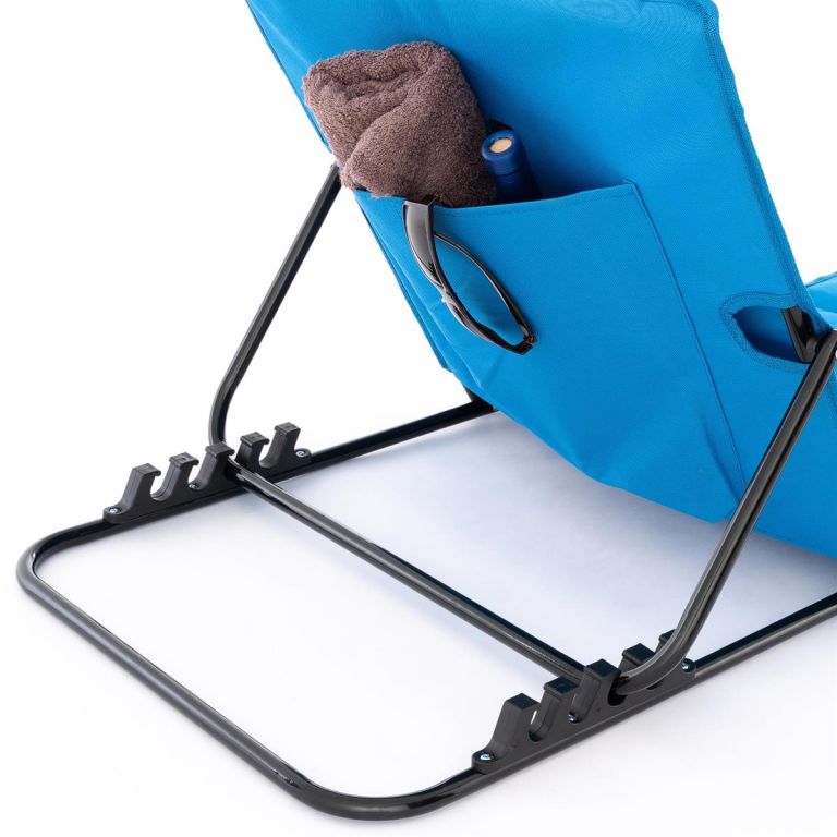 Táto plážová podložka je nevyhnutným doplnkom pre Vašu relaxáciu. Zdvihnuté operadlo zaisťuje pohodlný výhľad na hranie Vašich detí alebo na Vašu knihu. Polstrovaný poťah poskytuje pohodlné ležanie. Plážová podložka sa rýchlo zloží a možno ju ľahko transportovať pomocou praktického popruhu. Uterák, kniha alebo noviny môžu byť uložené do vrecka so suchým zipsom pripevneným k zadnej časti.