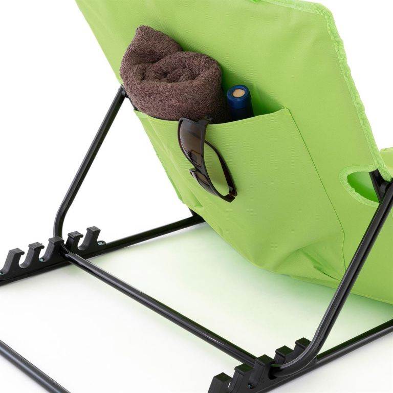 Táto plážová podložka je nevyhnutným doplnkom pre Vašu relaxáciu. Zdvihnuté operadlo zaisťuje pohodlný výhľad na hranie Vašich detí alebo na Vašu knihu. Polstrovaný poťah poskytuje pohodlné ležanie. Plážová podložka sa rýchlo zloží a možno ju ľahko transportovať pomocou praktického popruhu. Uterák, kniha alebo noviny môžu byť uložené do vrecka so suchým zipsom pripevneným k zadnej časti.