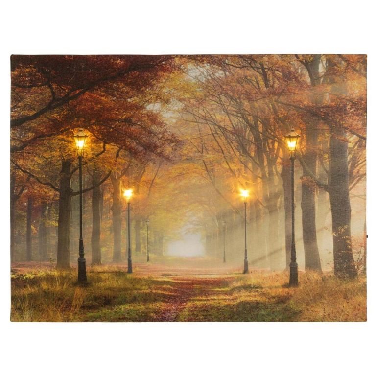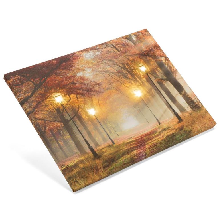 Obraz s motívom lesnej cesty vrátane LED diódy vykúzli príjemnú náladu a útulnú atmosféru v obývacom priestore na akomkoľvek mieste. Cesta jesenným farebným listnatým lesom vás pozýva na snívanie a odpočinok. Cez stále ešte husté farebné lístie preniká len niekoľko slnečných lúčov. Na ceste leží pestrofarebné jesenné lístie, ktoré pri chôdzi doslova počujete šušťať. Vďaka napájaniu na batérie nemáte žiadny nepríjemný kábel a môžete zavesiť svetelný obraz kamkoľvek. Zadná časť je pripravená na zavesenie. Vysoko kvalitná fototlač na plátne je nielen krásnou dekoráciou ale aj skvelým darčekom.