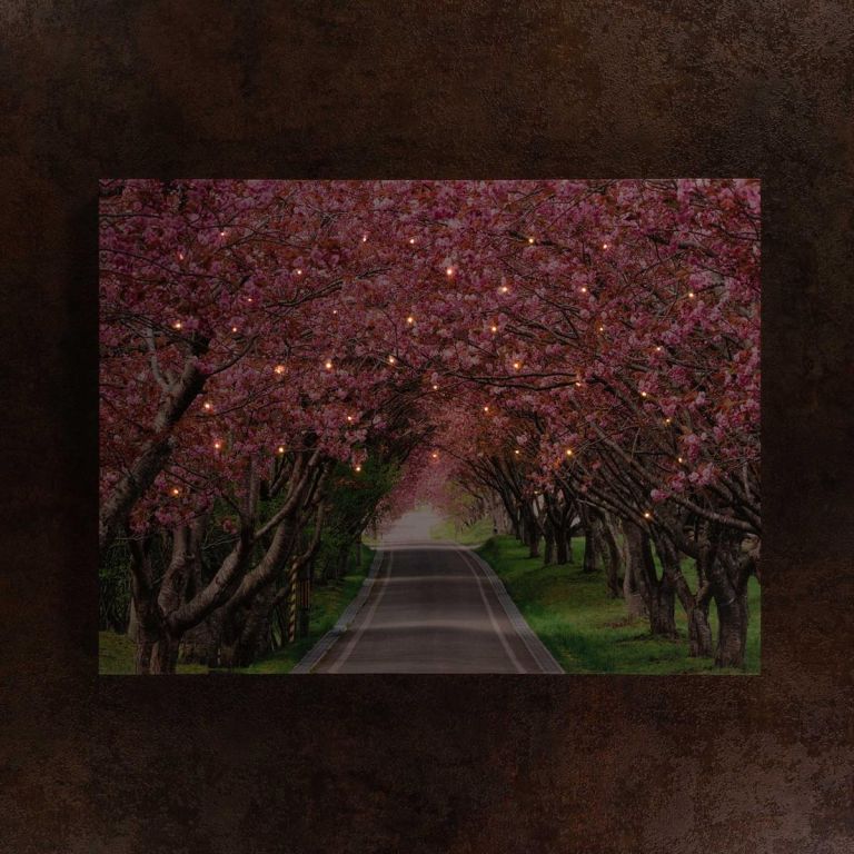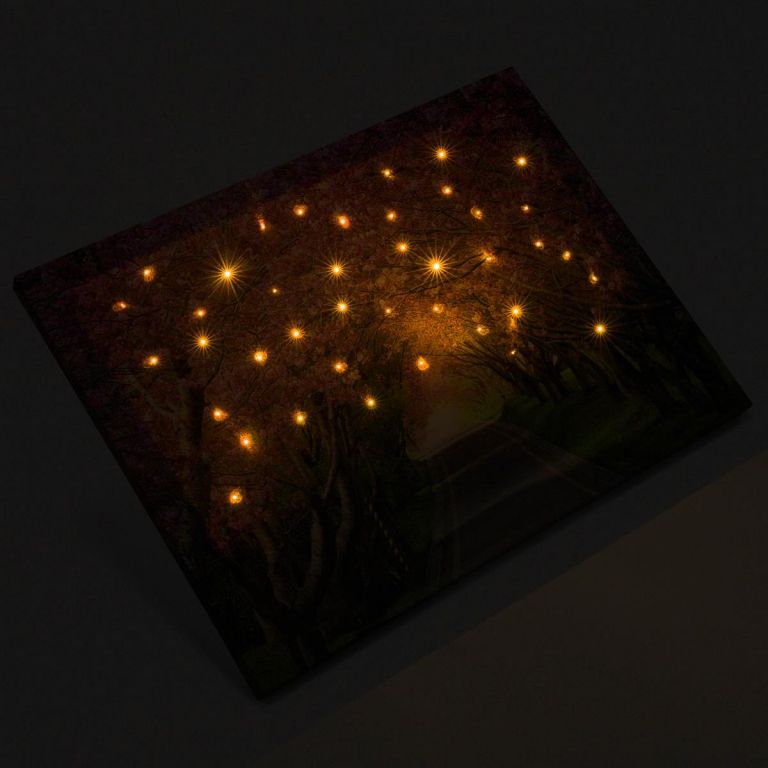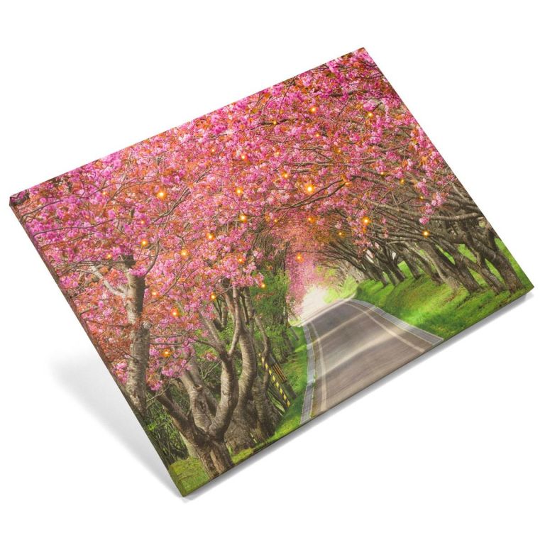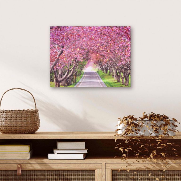 Nástenná maľba rozkvitnutá alej stromov, 40 LED, 30 x 40 cm