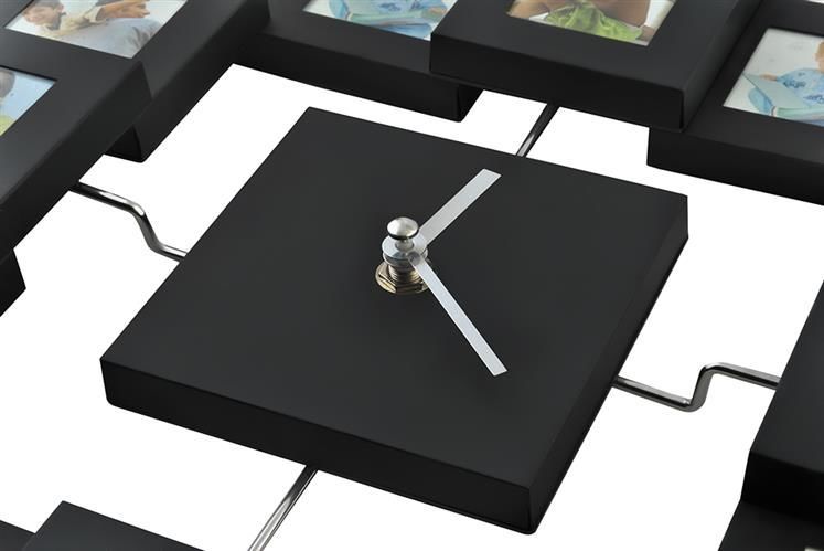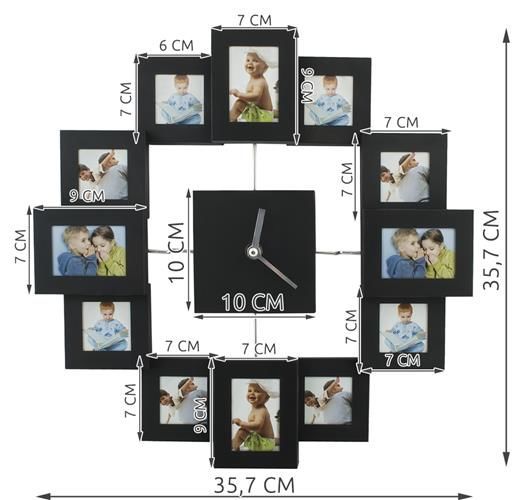 Štýlové hodiny s rámčekmi, ktoré sa hodia do každého interiéru. Hodiny majú 12 rámov, do ktorých môžete vkladať fotografie detí, rodiny, zvierat ... všetko, čo chcete!