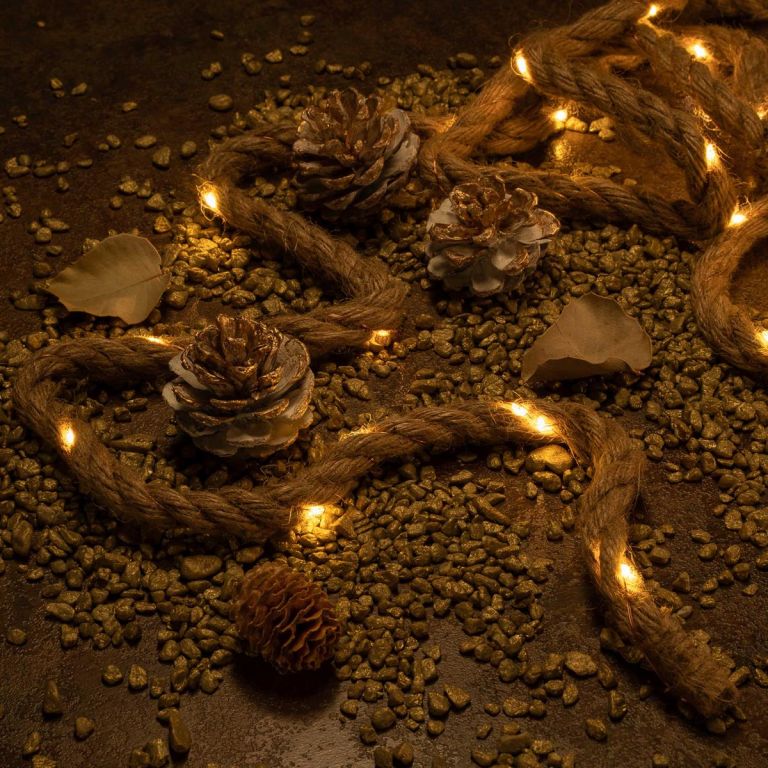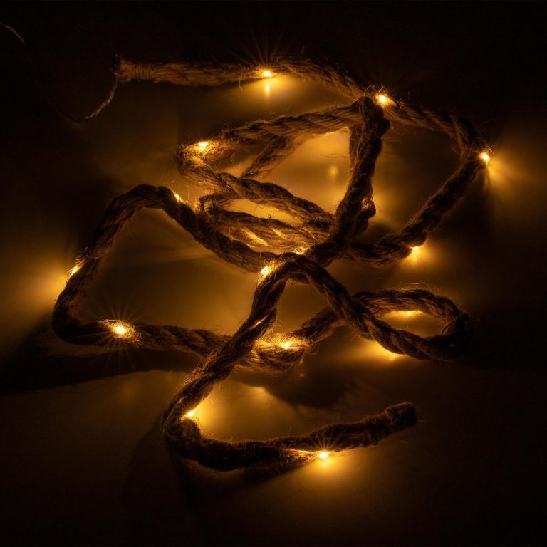 Elegantná vianočná dekorácia s dĺžkou lana 2 metre, vybavená 25 teplo bielymi svietiacimi LED diódami pre zavesenie. Vďaka batériovej prevádzke ste s týmto dekoratívnym prvkom nezávislí na externých zdrojoch energie a môžete svetelné lano umiestniť po celej miestnosti. LED diódy zaisťujú extrémne nízku spotrebu energie. Vďaka svetelnej dekorácii v elegantnom dizajne z konopného lana máte niekoľko možností designu, či už vedľa vianočného stromčeka, na okne alebo na polici, tento svetelný prvok vytvára útulnú vianočnú atmosféru. S časovačom s dobou svietenia až 6 hodín sa môžete sami rozhodnúť, kedy chcete zapnúť osvetlenie. Voľne voliteľná funkcia časovača alebo nepretržitého osvetlenia.