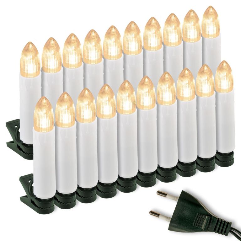 Chcete vyčarovať rovnaké Vianoce ako keď ste boli ešte deťmi? Nie je nič jednoduchšie. Použite pri zdobení vianočného stromčeka tieto sviečky - obsahujú 20 LED diód, ktoré vyžarujú teplé biele svetlo. Na stromček ich upevníte pomocou svoriek a svetlo vyžarujú na vzdialenosť cca 40 cm. Sviečky sú vhodné iba pre vnútorné použitie!