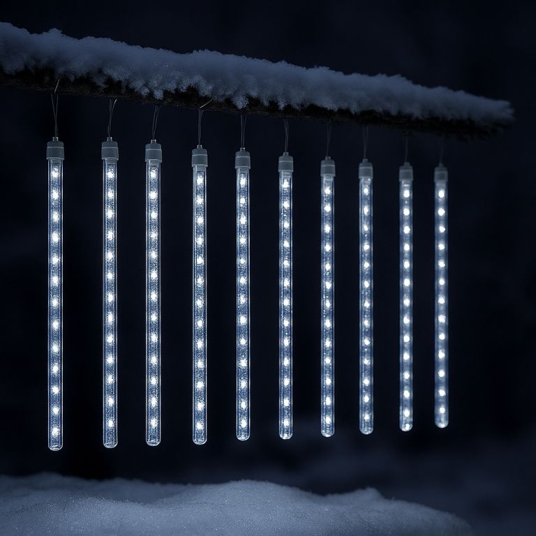 Doprajte si prekrásne vianočné osvetlenie v tvare cencúľov s efektom meteorov alebo vodopádu. Je určené na použitie vo vnútorných i vonkajších priestoroch. Osvetlenie je vhodné nielen na Vianoce, ale na akúkoľvek príležitosť predovšetkým počas chladnejšieho obdobia roka. Prívodné vedenie od transformátora k prvej tyči je dlhé približne 5 metrov, takže máte dostatok priestoru na umiestnenie svetelných tyčí.
