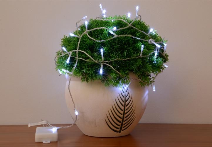 Vďaka pohonu na batérie máte pri dekorovaní úplne voľnú ruku, takže nemusíte premýšľať nad tým, kde máte k dispozícii zásuvku. Vďaka zabudovanému časovému spínaču sa môžete sami rozhodnúť, kedy sa má Vaše osvetlenie zapnúť. Stačí si čas navoliť tlačidlom. Teraz je uložený interval, v ktorom diódy 6 hodín svietia a 18 hodín sú vypnuté.