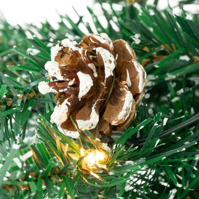Vianočný stromček je osvetlený svetelnou reťazou s 50 LED diódami v teplom bielom svetle. Okrúhly podstavec ozdobného stromčeka je v malom jutovom sáčku. Vďaka prevádzke na batérie nie ste závislí na elektrickej zásuvke a stromček môžete umiestniť kdekoľvek v miestnosti. Praktický časovač / časový spínač umožňuje ovládať dobu svietenia svetelnej reťaze. Stačí stlačiť tlačidlo Štart v okamihu, keď chcete, aby sa svetlá rozsvietili. Teraz LED diódy svietia 6 hodín a potom sú 18 hodín vypnuté. Voľne voliteľná funkcia časovača alebo nepretržitého svietenia.