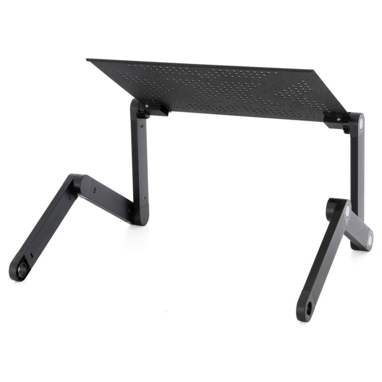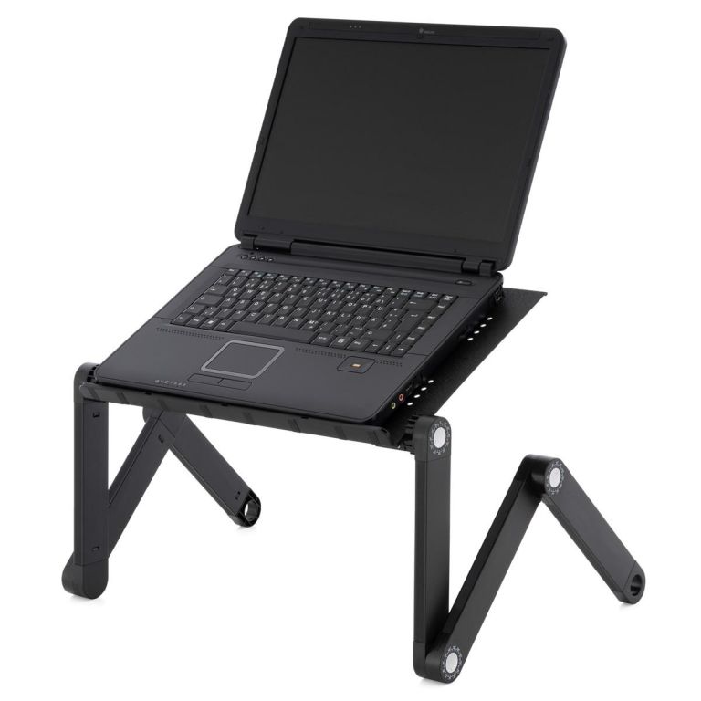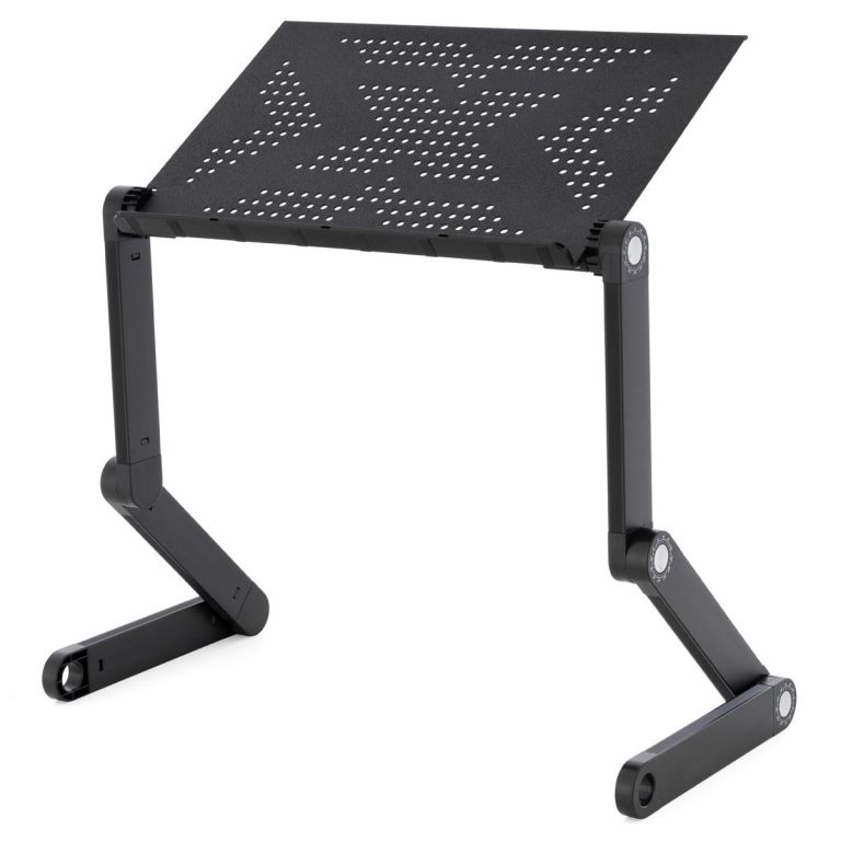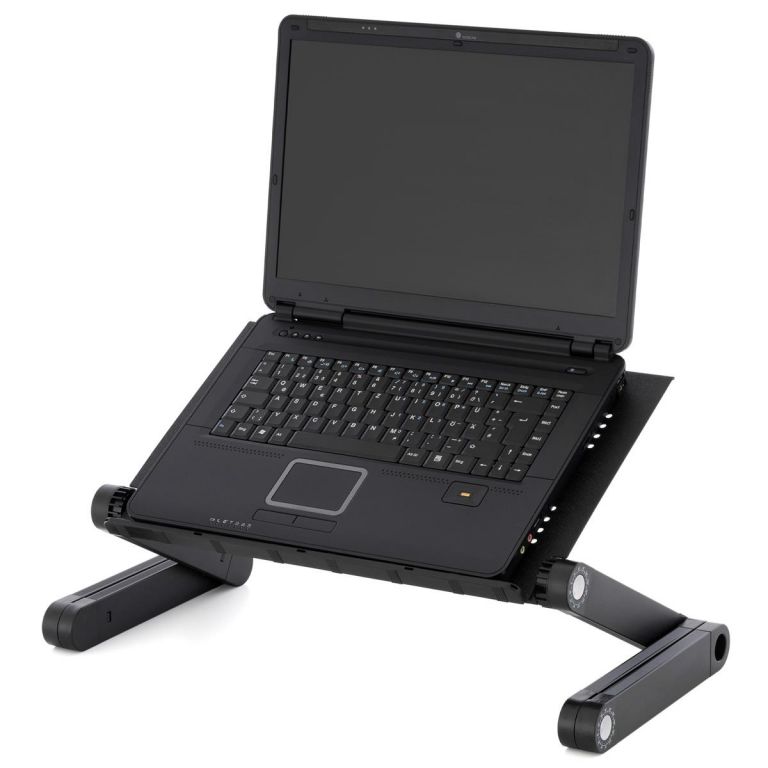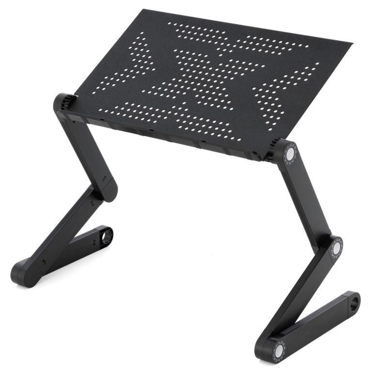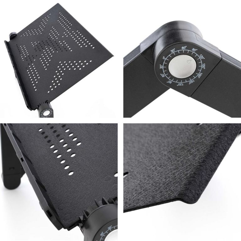 Dlhodobé sedenie zvyšuje riziko bolesti chrbta a krku. Náš stojan na notebook možno individuálne prispôsobiť Vašim potrebám z hľadiska výšky i sklonu, čím sa výrazne zvyšuje ergonomický komfort. Postavte stojan na notebook na stôl a pracujte pre zmenu v stoji. Váš stolík pre notebook je nastaviteľný pomocou uhlových kolies pripevnených ku kĺbom, a preto ho možno prispôsobiť Vašim potrebám pri sedení alebo ležaní. Pohodlné v akejkoľvek polohe: v sede, pri státí alebo ležaní. Notebookový stolík sa ľahko prepravuje vďaka nízkej hmotnosti a robustnému materiálu. Dierovaný vzor integrovaný v doske pomáha chrániť zariadenie pred prehriatím, a to vďaka prirodzenému chladeniu.