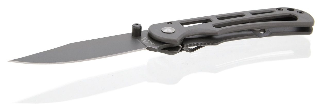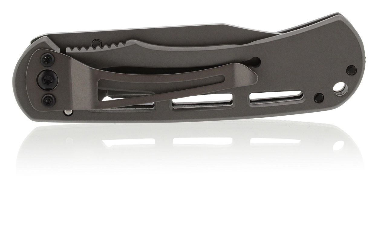 Čepeľ noža je zhotovená z nožiarskej ocele 420J2, dĺžky 7 cm o hrúbke 2,5 mm. Materiál dosahuje tvrdosti HRC52-54 a je obzvlášť vhodný do nepriaznivého prostredia, kde exceluje svojou odolnosťou voči korózii, navyše je potiahnutý titánovým povrchom. Vďaka výstupku na boku čepele je možné otvorenie noža jednou rukou. Nôž je vybavený poistkou, ktorá sa ovláda bočným posunom palca v spodnej časti rukoväte. Rukoväť s atraktívnou perforáciou oboch strienok, na zadnej strane vybavená štipcom na prichytenie za okraj vrecka, opaska a pod. Strienky sú kvalitne spracované z nožiarskej ocele 420J1 potiahnutej titánom.