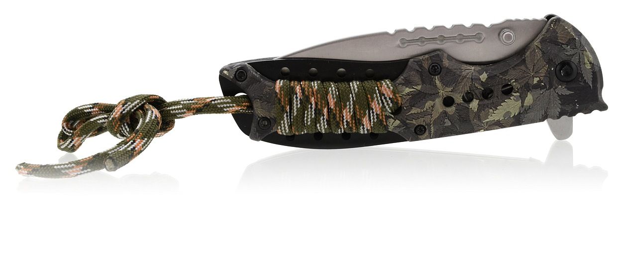 Nôž o nízkej hmotnosti s potlačou konopných listov a lesnej kamufláže. Nôž Cana je užitočný pomocník pre camping, rybárčenie a ďalšie outdoor aktivity