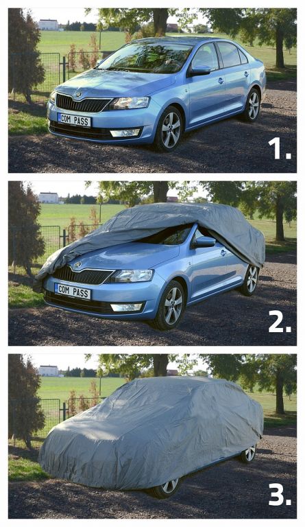 Plachta je ideálna proti znečisteniu vozidla, zabraňuje aj námraze. Jednoduché univerzálne upevnenie. Balené v praktickom, na zips uzatvárateľnom balení, do ktorého je možné plachu po použití ľahko zložiť a uskladniť. Jednoduché upevnenie plachty - iba sa nasadí na automobil, na spodku sa upevní časť so všitou gumou za vhodné záhyby karosérie / nárazníka. Predná aj zadná časť plachty je osadená pevnými okami, pomocou ktorých je možné plachtu ešte pevnejšie upevniť.