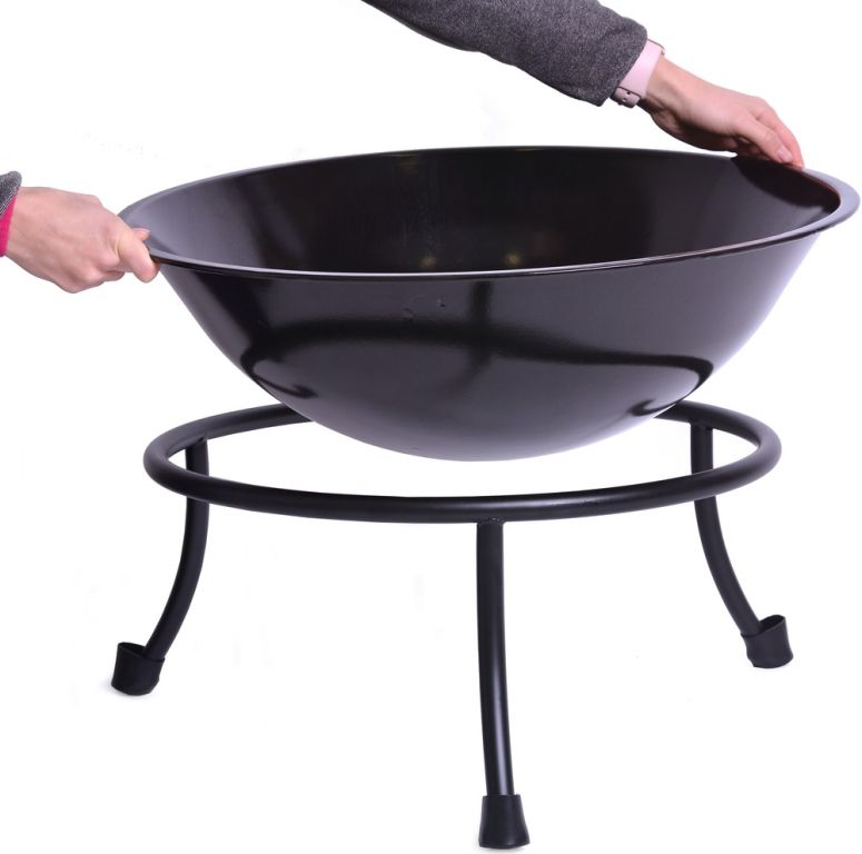 Praktické ohnisko na terasu bytu alebo na trávnatú lúčku. Vzhľadom na tri nosné opierky sa nemusíte báť žiarom spálenej trávy a vypálených kruhov. Z nádoby je možné ľahko vysypať a zotrieť popol zo spáleného dreva, pripečeného jedla či marinády a oleja.